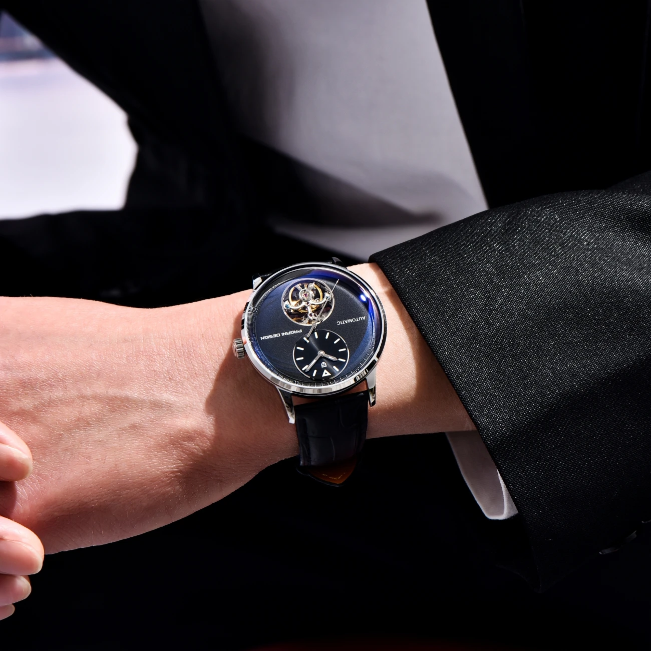 The watch features a sleek design, perfect for those who appreciate subtle luxury and sophistication.