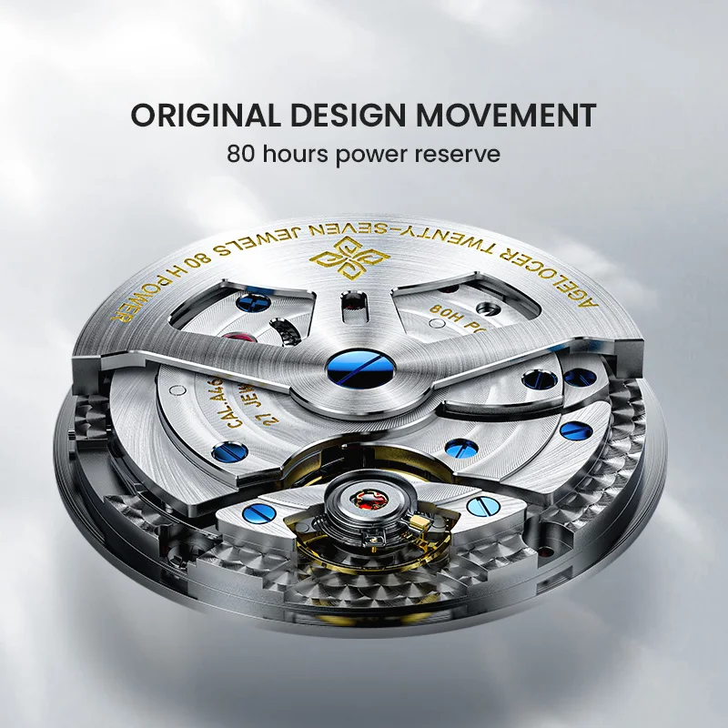 AGELOCER Original Budapest Watch Steel Strap Men’s Business Dress Big Calendar Automatic Mechanical Watch Birthday Gift for Men
