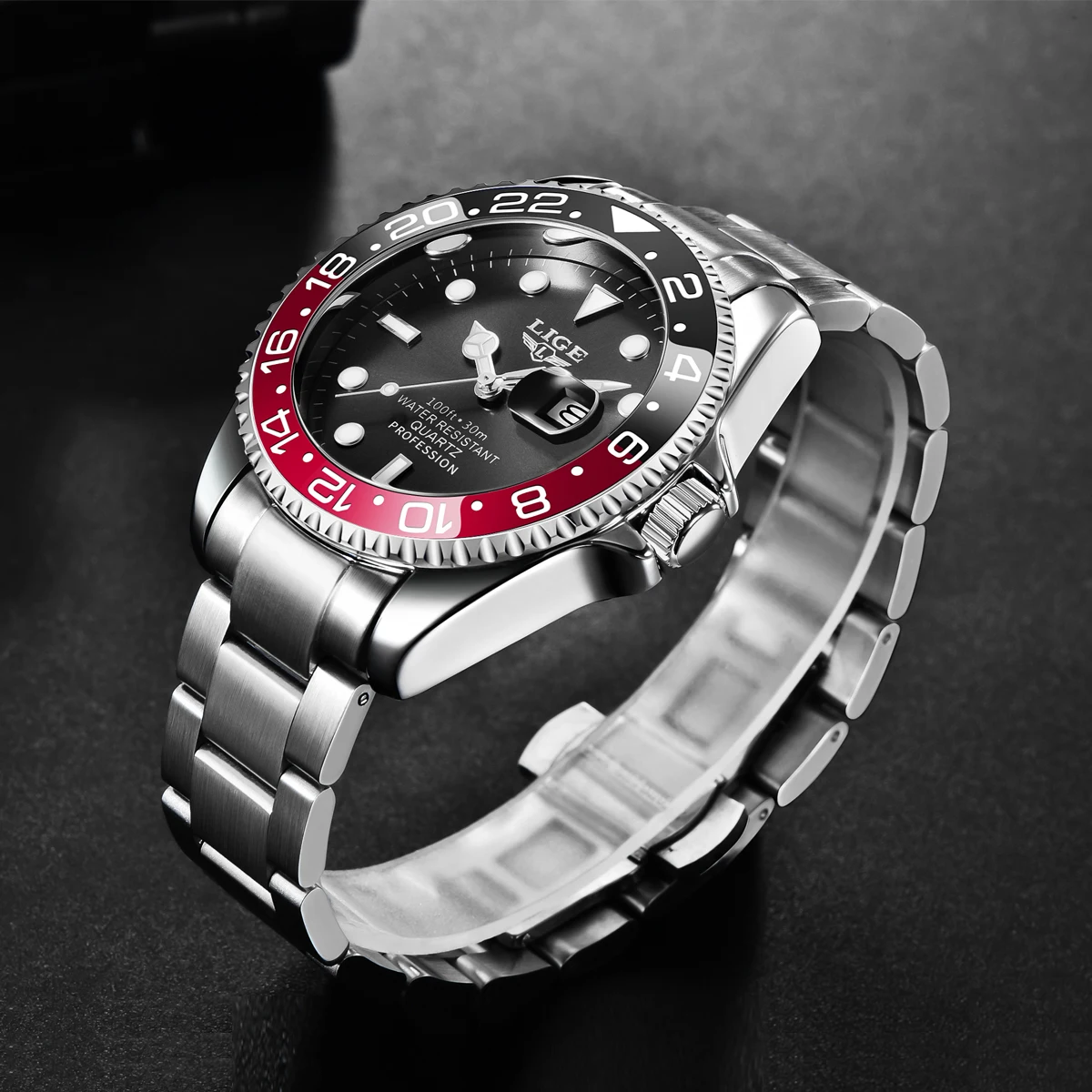 LIGE New Luxury Couple Watches Quartz Watches 30M Waterproof Fashion Stainless Steel Watch Valentine Gift Love Watch +Box