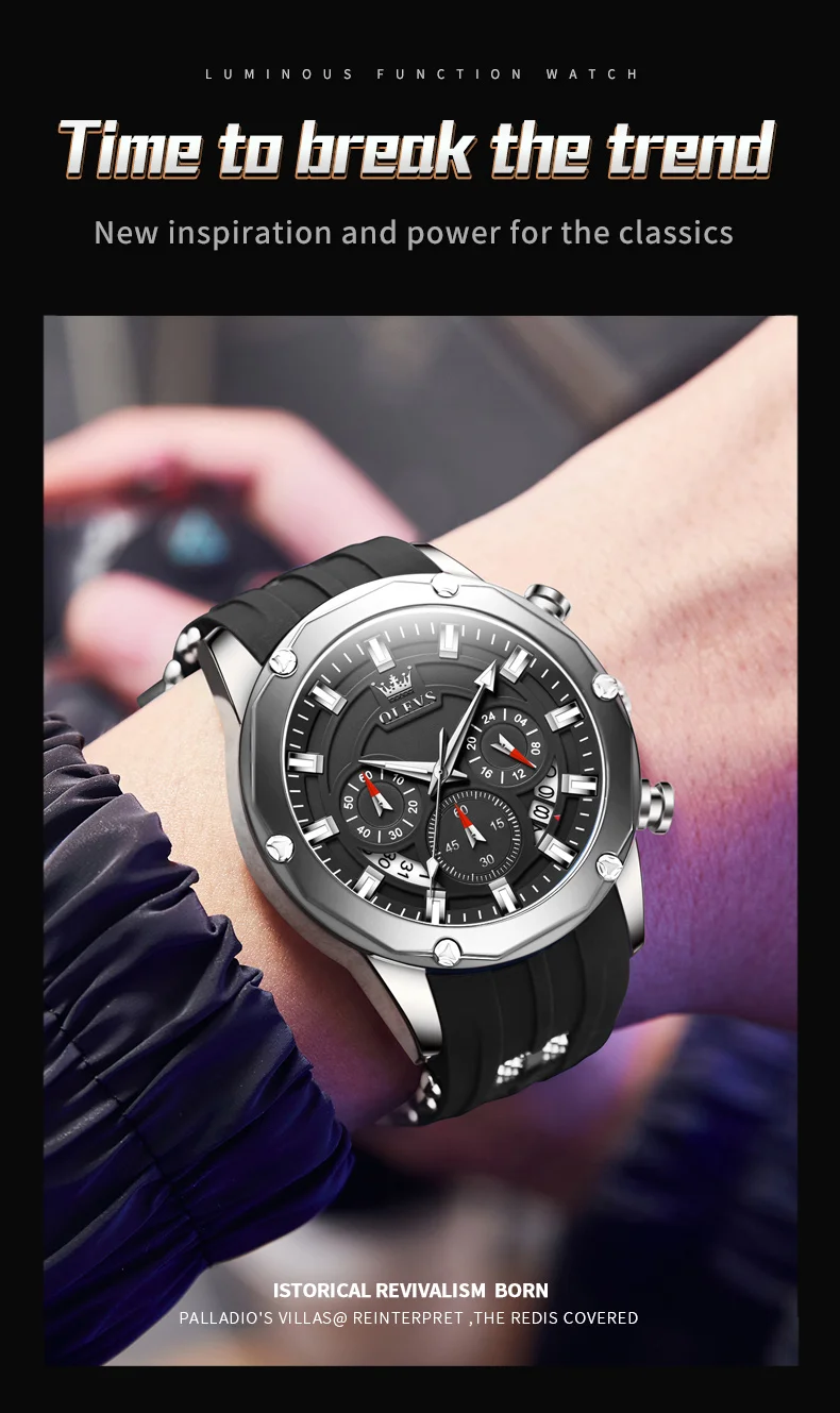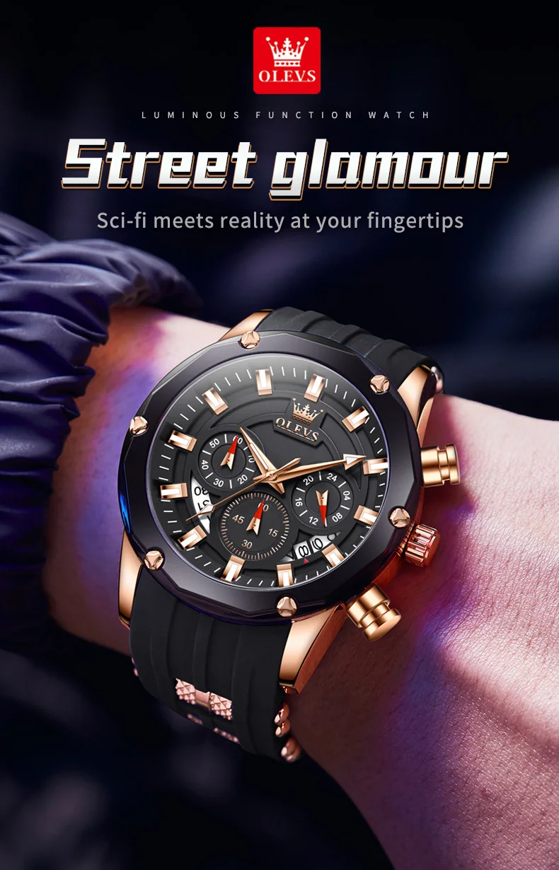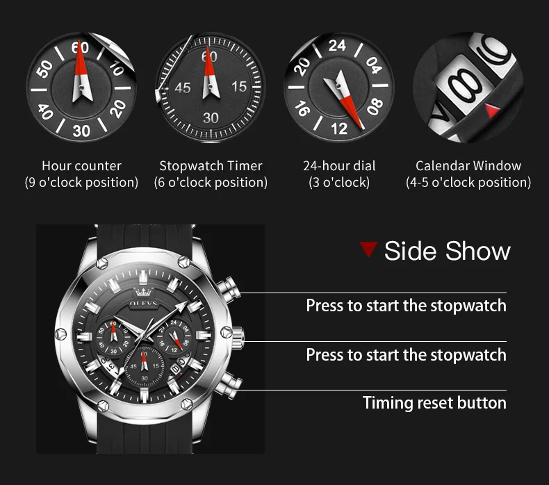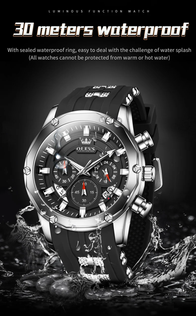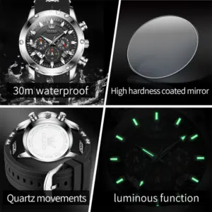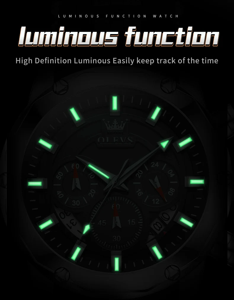 - Feature: Shock Resistant,Luminous,Auto Date,Chronograph,Luminous Hands