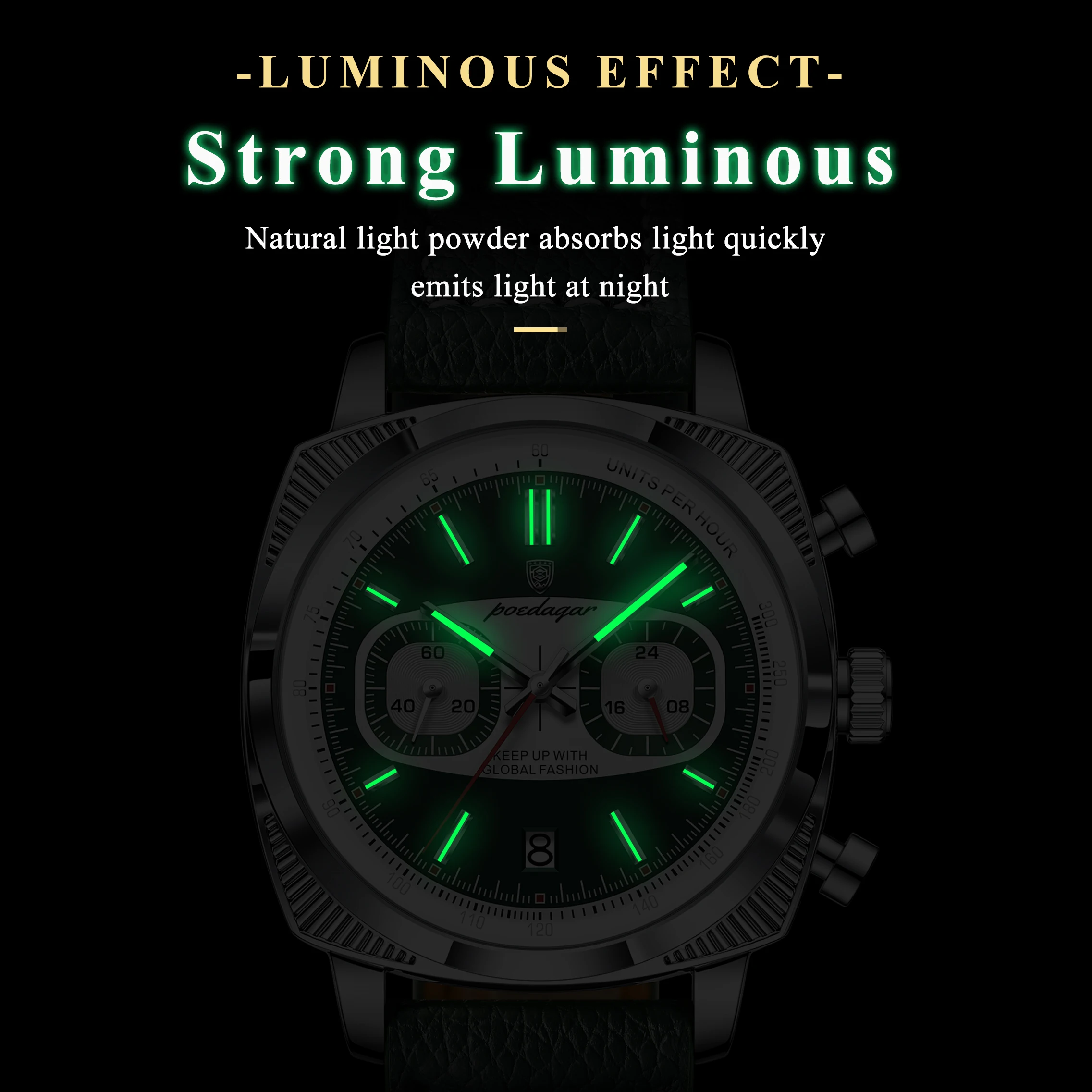 POEDAGAR Original Fashion Men Clock Luminous Waterproof Chronograph Date Watch For Man Luxury Leather Quartz Men’s Watches Reloj