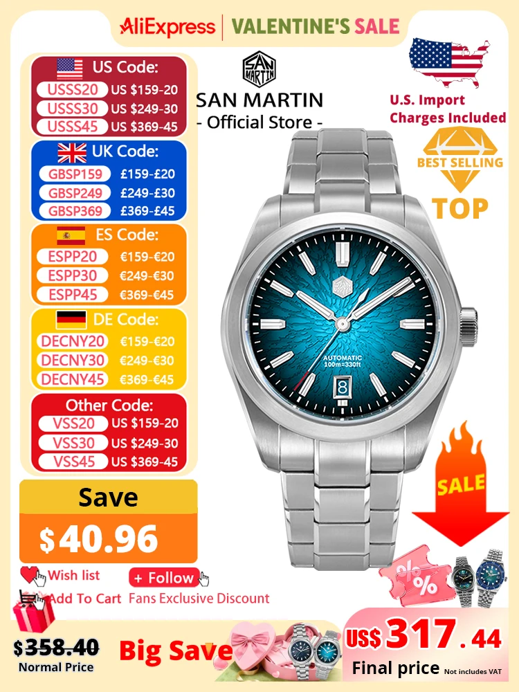 - Screw-down Case Back: Engraved with Chinese stamp "Made in San Martin"