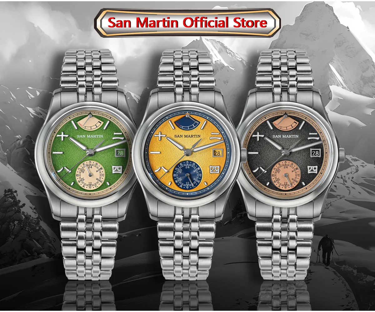 San Martin 39mm Miyota 9132 Power Reserve Display Men Luxury Sport Watch Automatic Mechanical Waterproof Original Design SN0144