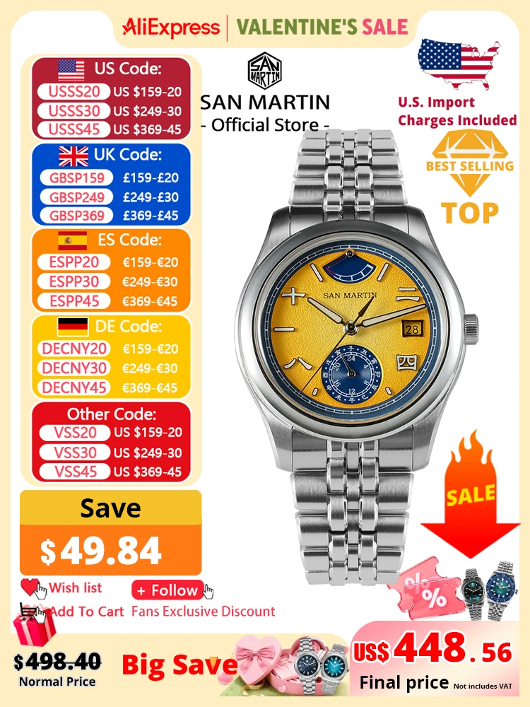 Be the first to review “San Martin 39mm Miyota 9132 Power Reserve Display Men Luxury Sport Watch Automatic Mechanical Waterproof Original Design SN0144”