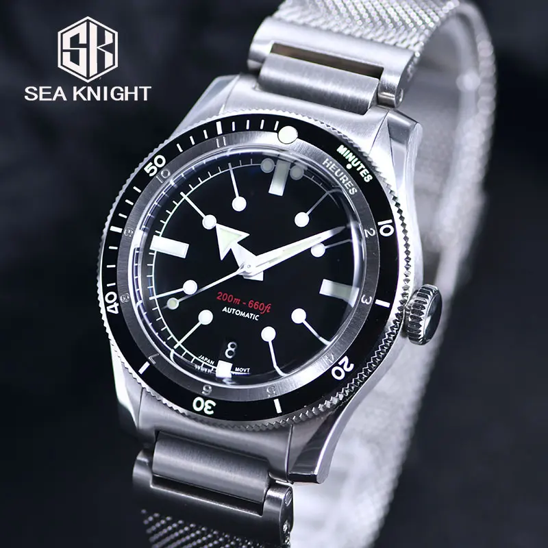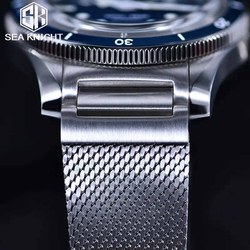 SEA KNIGHT Men NH35A Automatic Watch 200M Waterproof C3 Luminous 316L Steel Mesh Belt Sapphire Crystal Mechanical Diving Watch