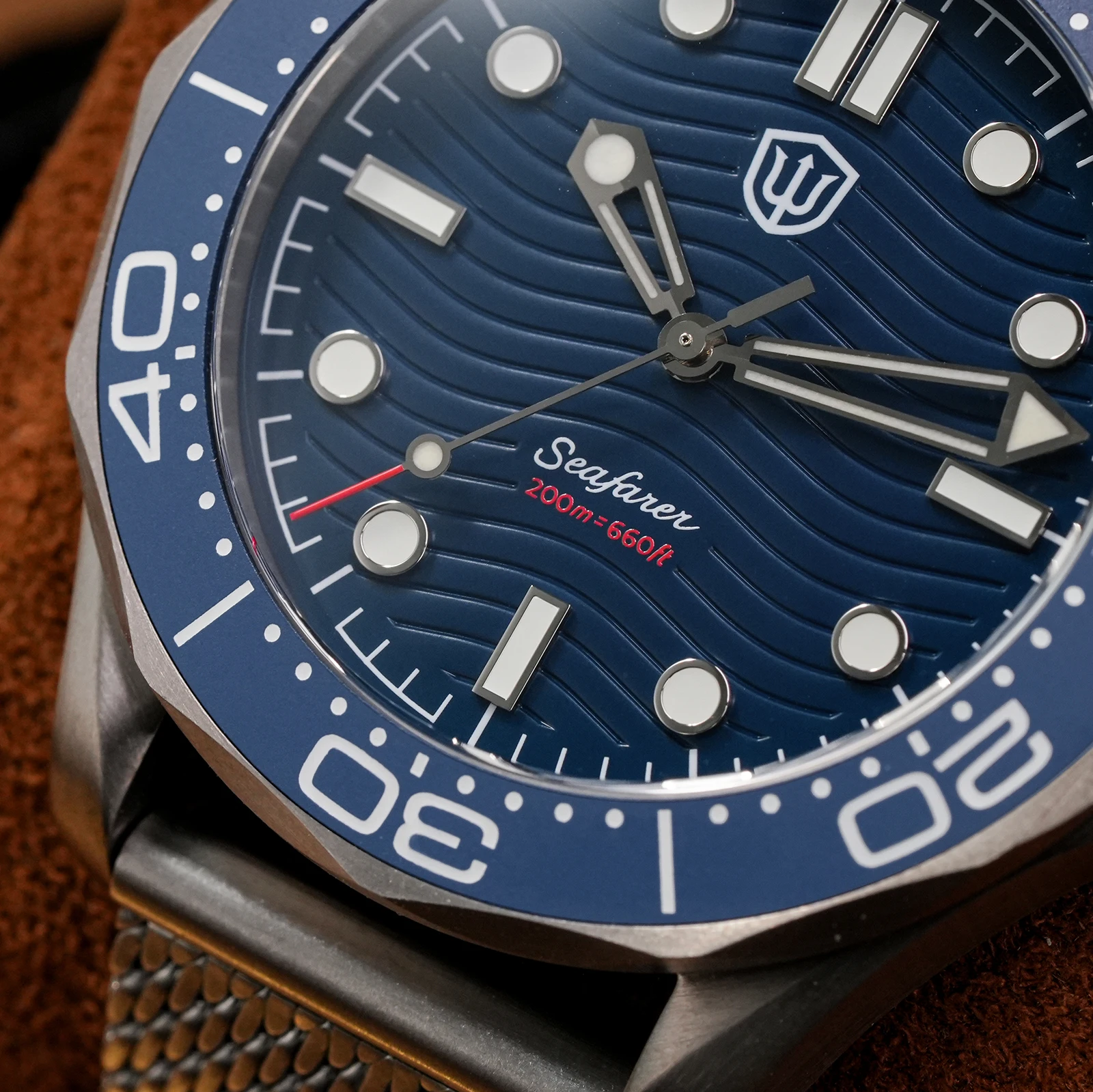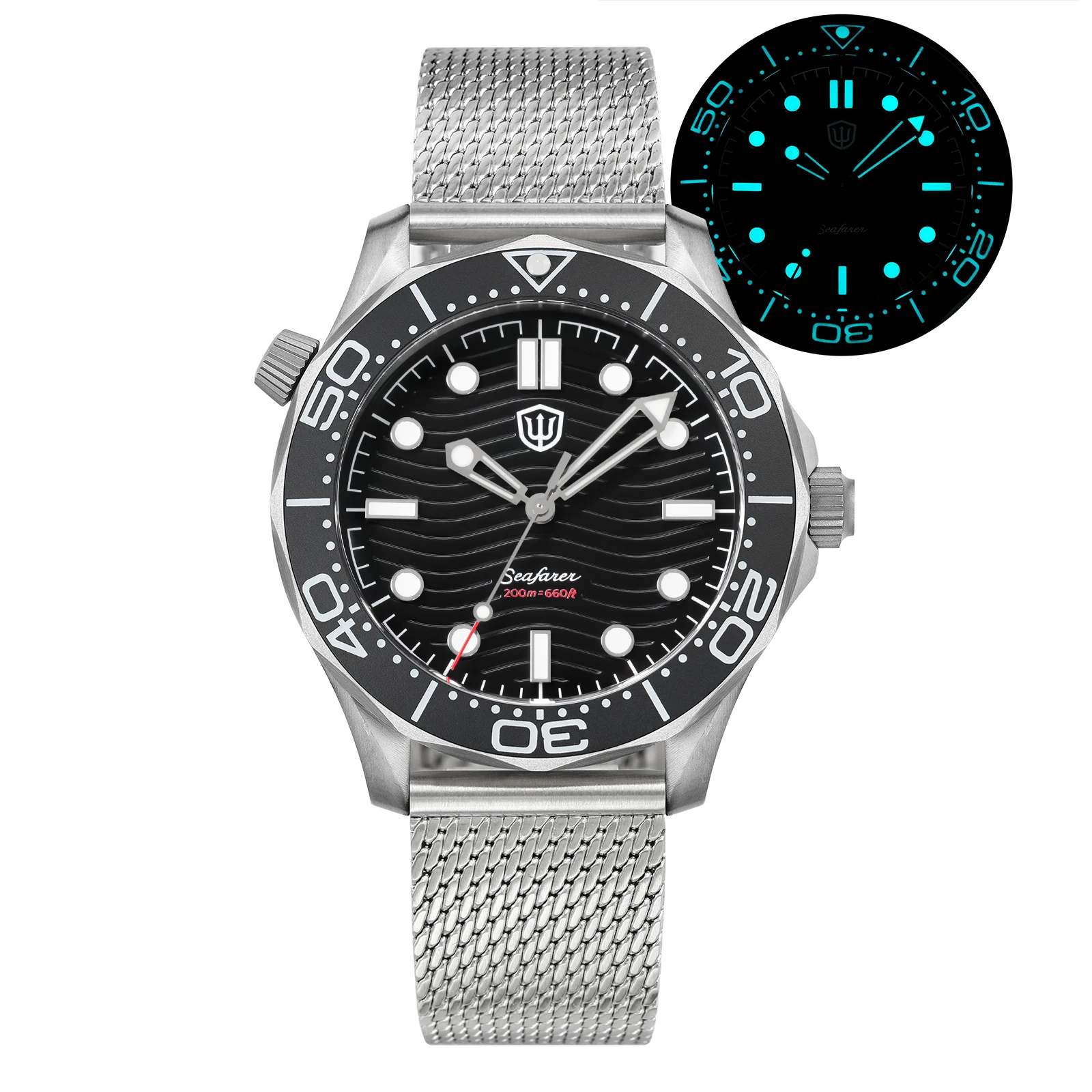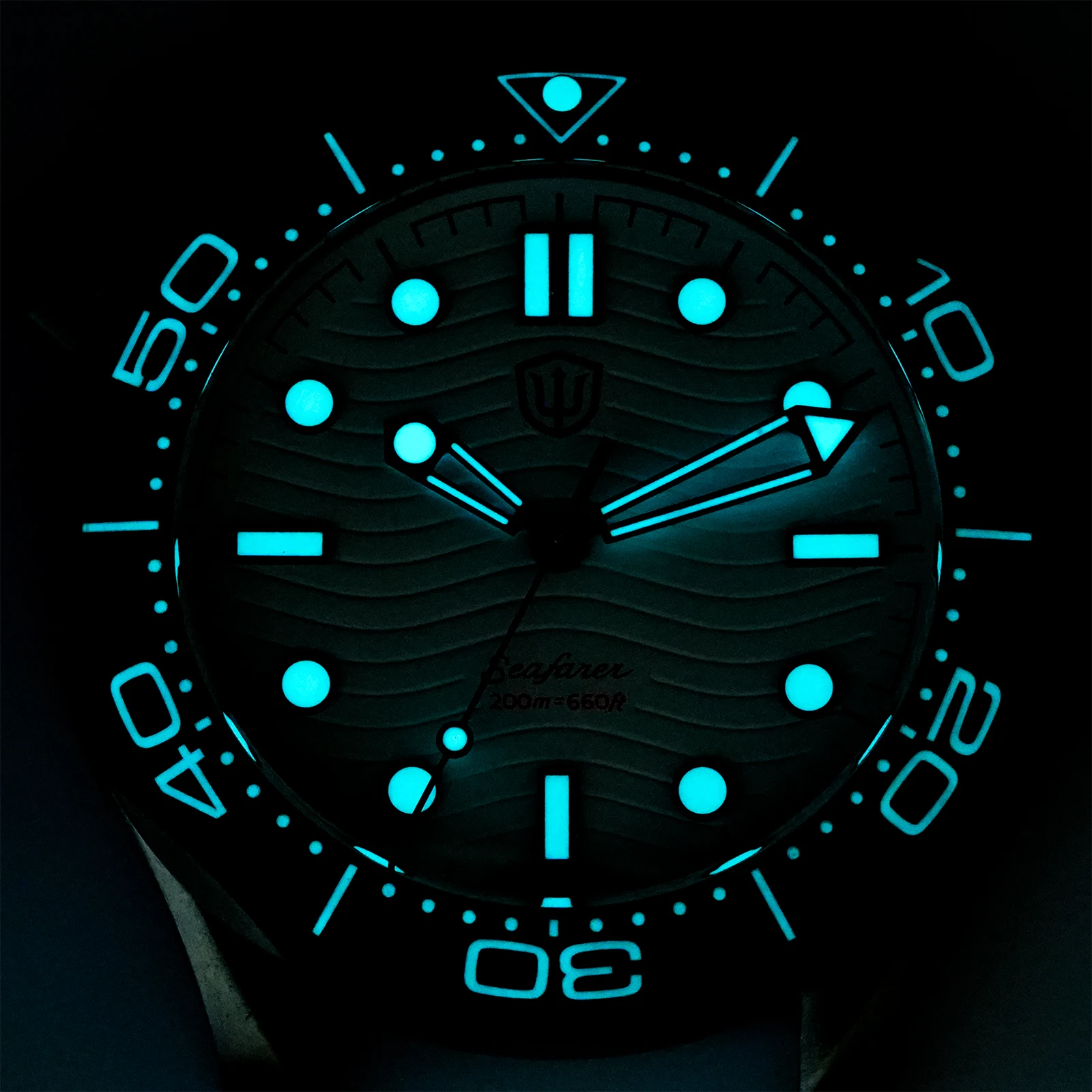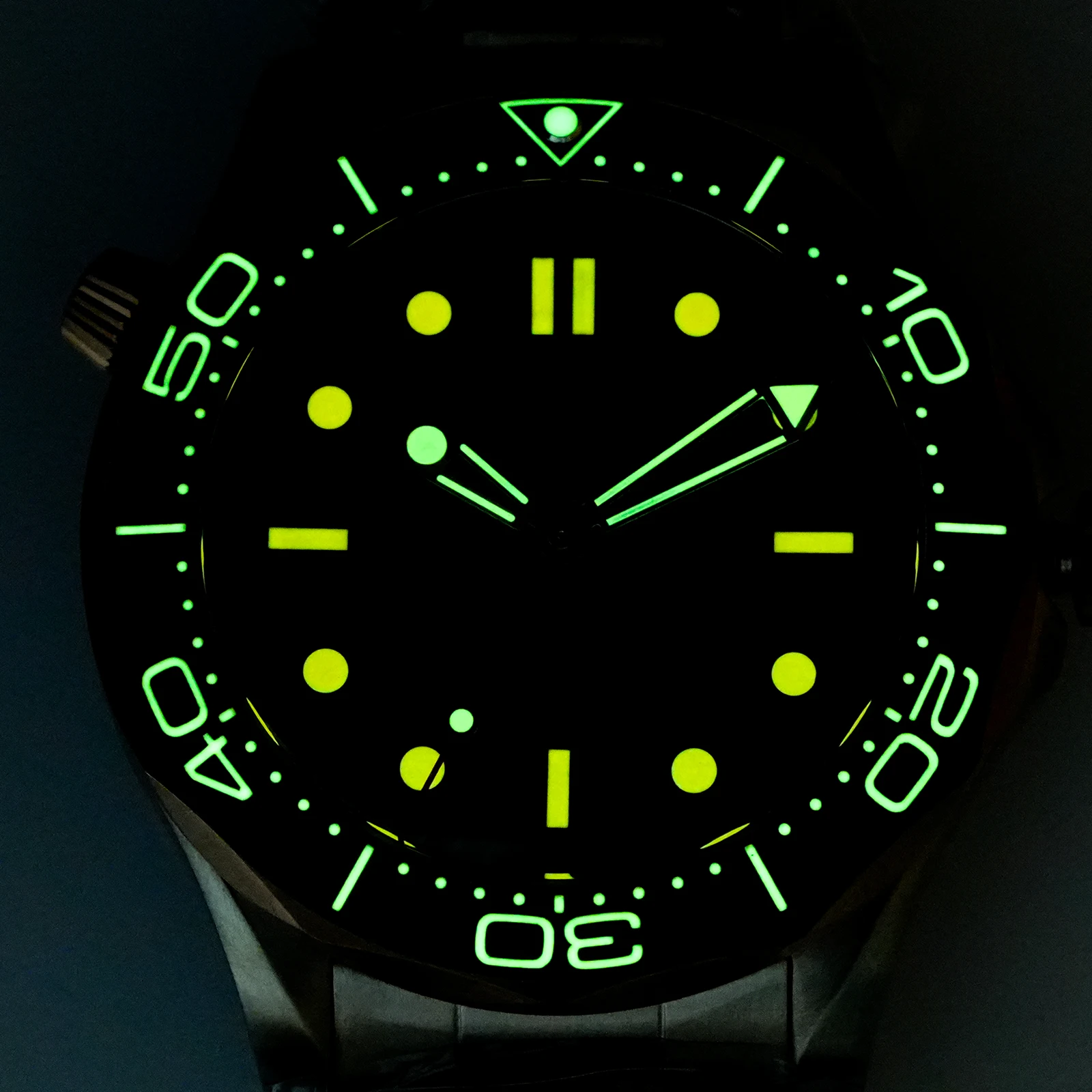 Luminous: Swiss Super Luminova C3 green for vintage black dial. Swiss BGW9 blue for white/blue/enamel wave dial.