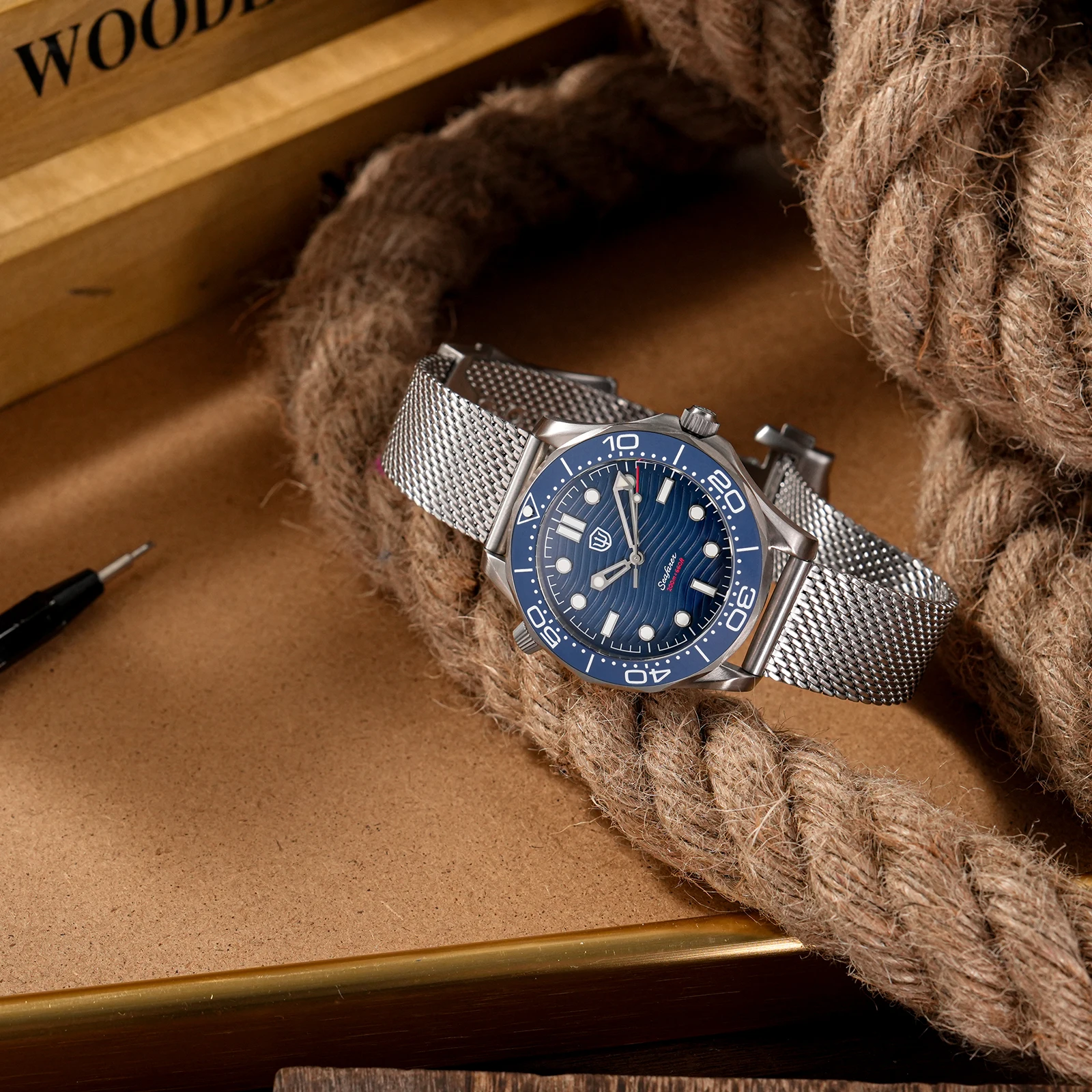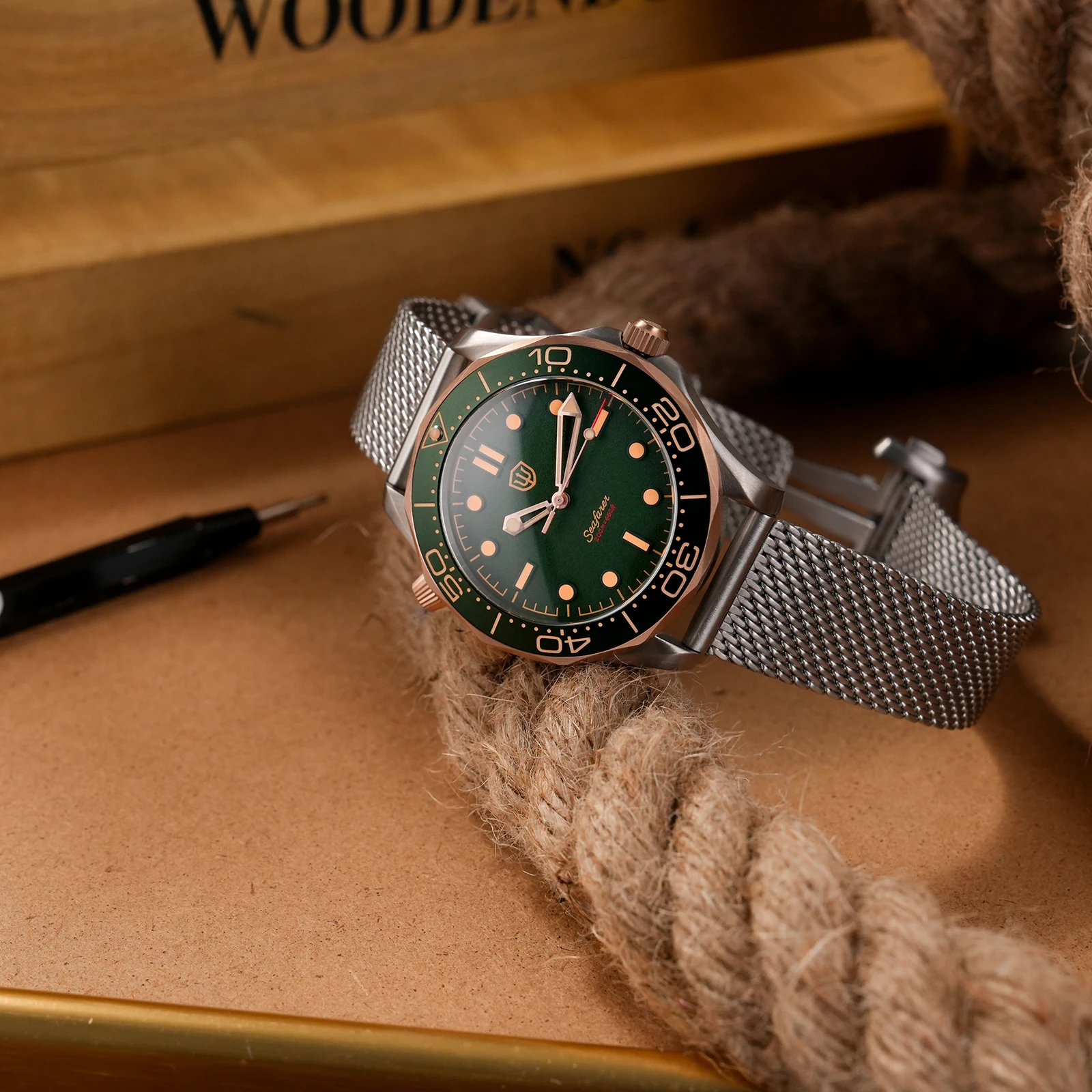 Caseback: Screwback Case(inspired by a ship’s helm, echoing the maritime spirit of the Seafarer.)