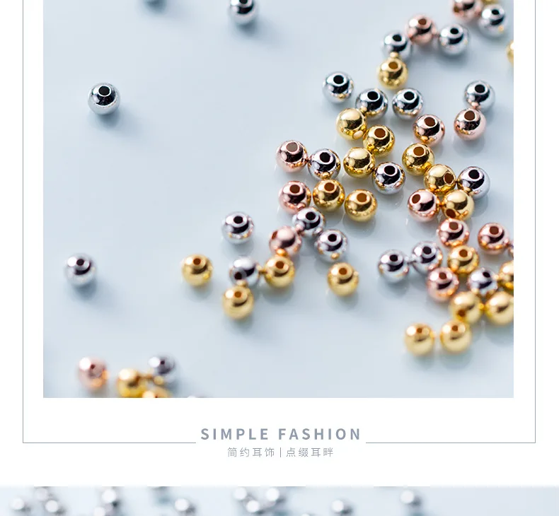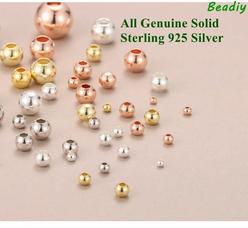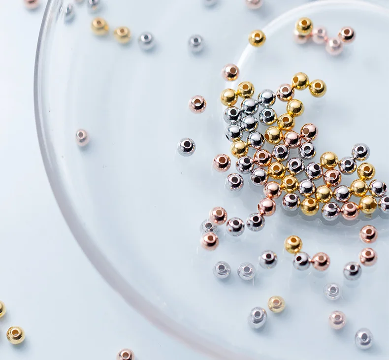 Wholesale 50pcs/pack Real Solid Sterling 925 Silver 2mm 3mm 4mm 5mm Round Beads for jewelry diy